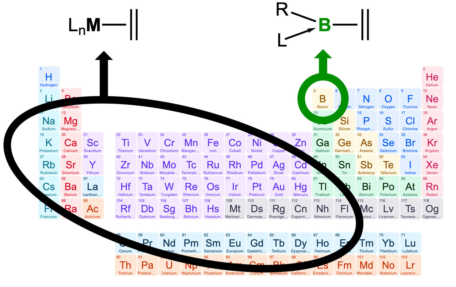 Next, the team wants to modify the boron,olefin π complexes so that their behavior is even more similar to that of the known metal complexes.