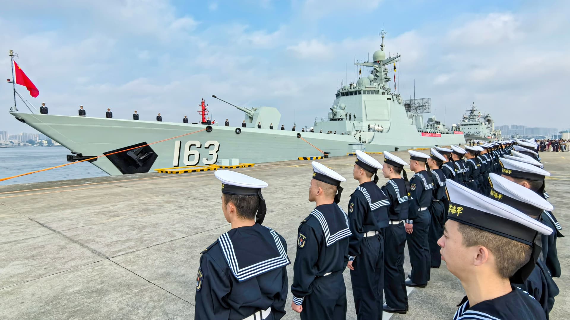 The 46th fleet of the Chinese People’s Liberation Army Navy sets sail from a military port in Zhanjiang, south China’s Guangdong Province, Feb. 21, 2024.