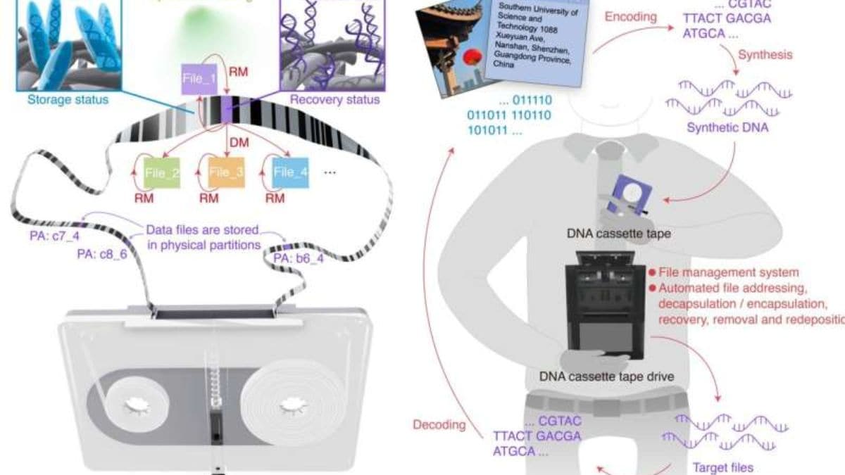 Our data-driven world is facing a storage crunch: hard drives and servers are reaching capacity, and data is growing faster than it can be stored. Researchers have unveiled an innovative solution by turning to DNA, nature’s ultimate hard drive, for high-density storage. DNA is extremely compact and long-lasting , one human cell’s DNA can store about 3.2 gigabytes, or roughly 6,000 books’ worth of information. In a recent Science Advances paper, scientists in China describe a “DNA cassette tape” that works much like the 1980s audio cassettes.