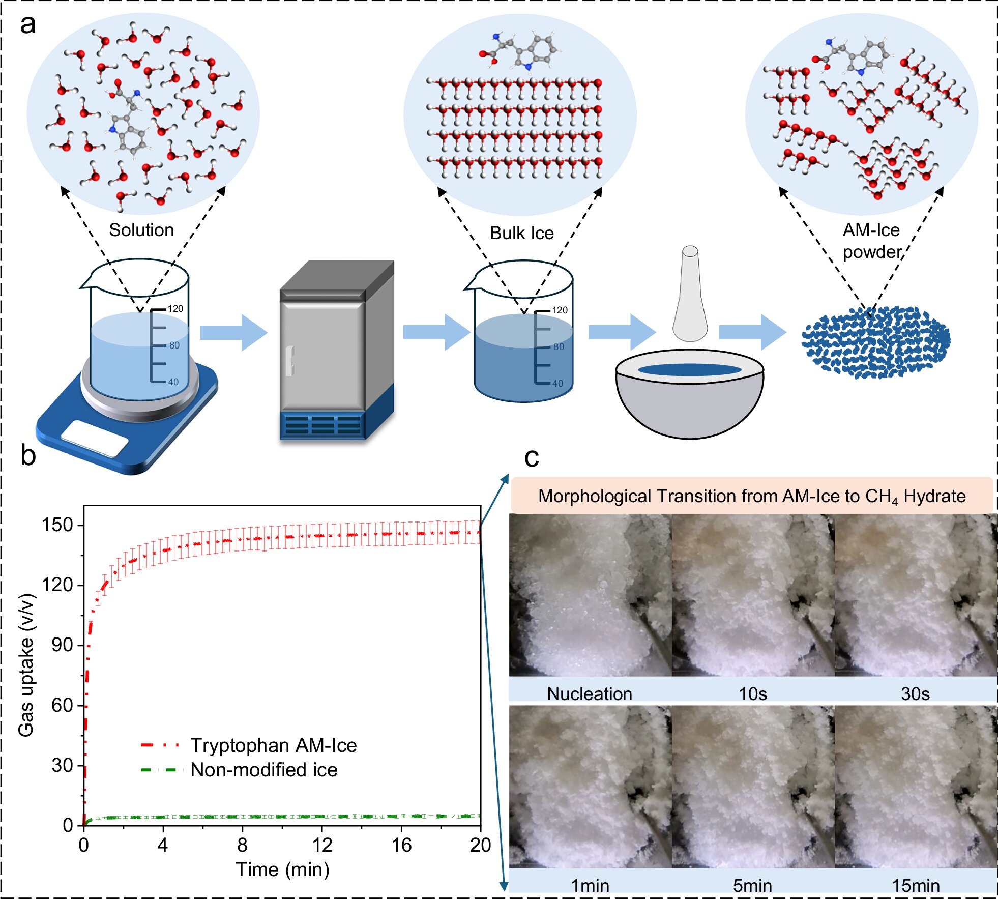 Ye Zhang et al, Rapid conversion of amino acid modified-ice to methane hydrate for sustainable energy storage, Nature Communications (2025). DOI: 10.1038/s41467-025-63699-2