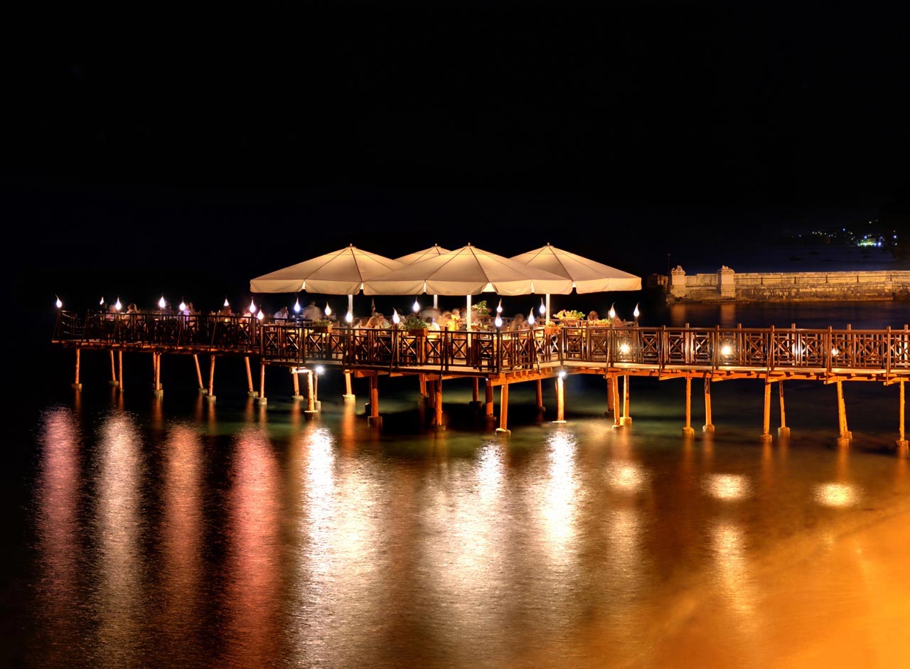 Why visit Kaiser Bridge Restaurant? Because dining on a wooden pier inside the sea creates a unique and romantic experience.