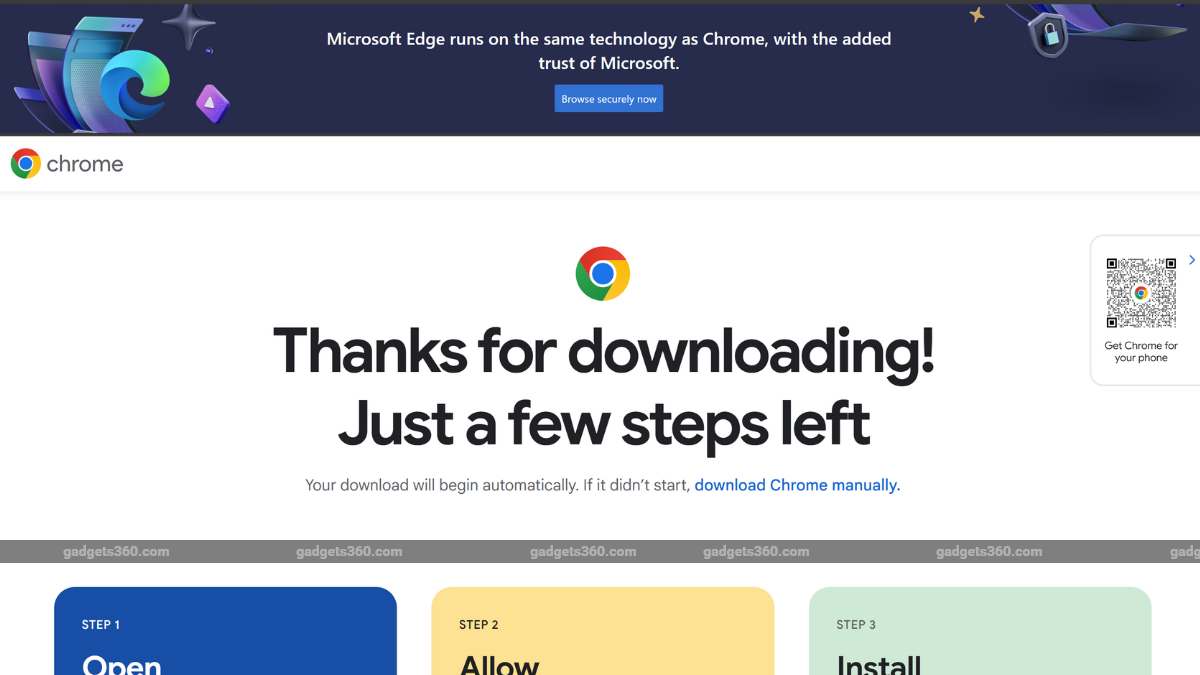 Microsoft currently displays a prompt on top of Google’s web page, after a user downloads Chrome using Microsoft Edge. The banner covers the top of the webpage from left to right. When a person boots a new device running Windows, Microsoft Edge is the only browser that comes as the default, but several users use it to download a third-party browser of their choice.
